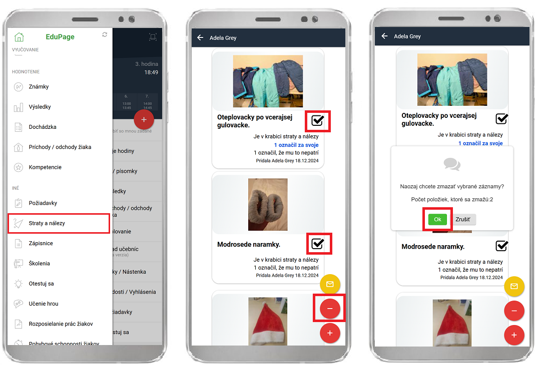 Kde uvidí žiak/rodič zoznam nájdených vecí?
