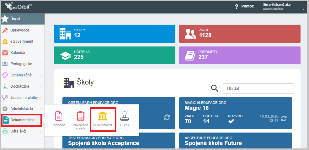 V aScOrbit v ľavom menu vyberte "Dokumentácia", časť "eGovernment".