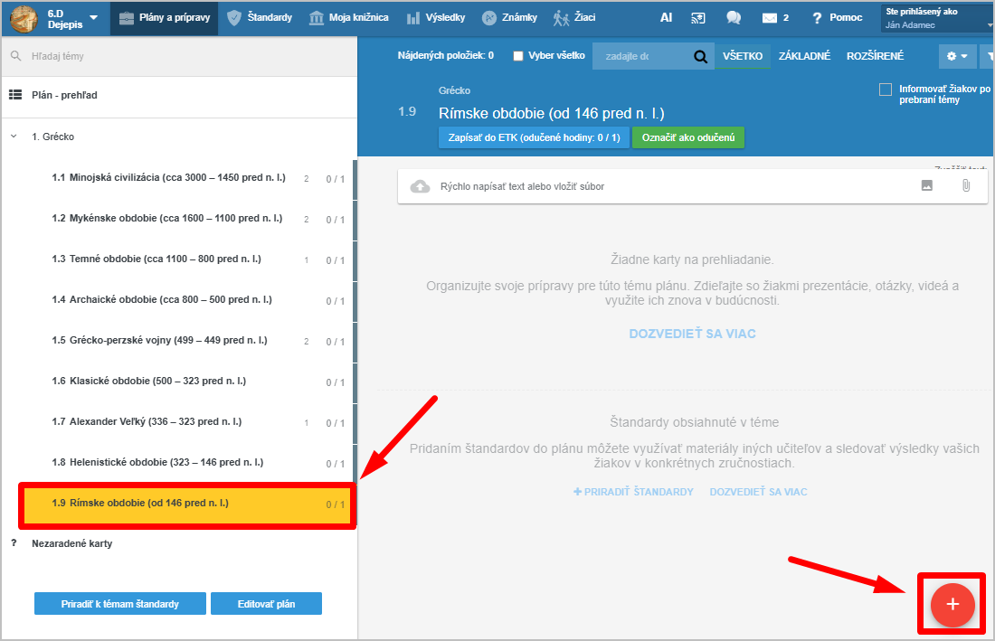 Nastavte sa na tému plánu, ku ktorej chcete pripraviť test. Stlačte červené +.