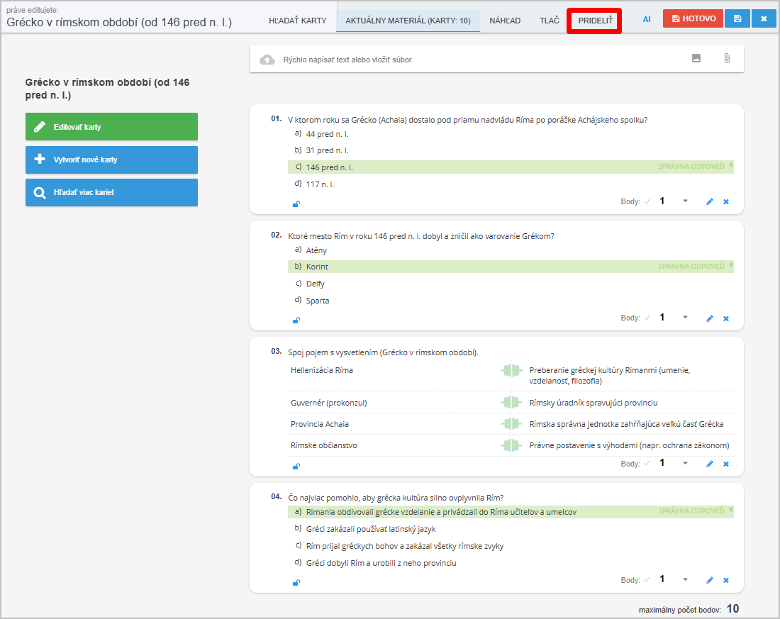 Skontrolujte vytvorené otázky, kedykoľvek ich môžete upraviť.