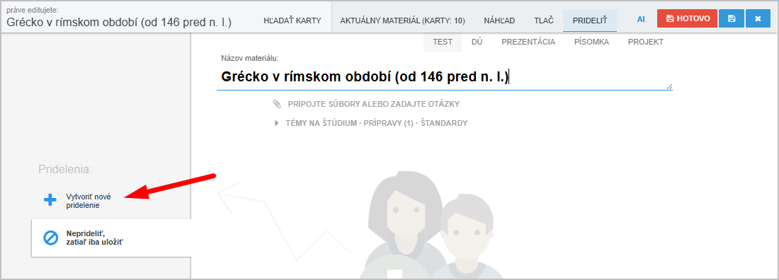 Ak ho chcete hneď prideliť, vytvorte nové pridelenie. Ak ho chcete iba uložiť bez pridelenia, stlačte Hotovo.