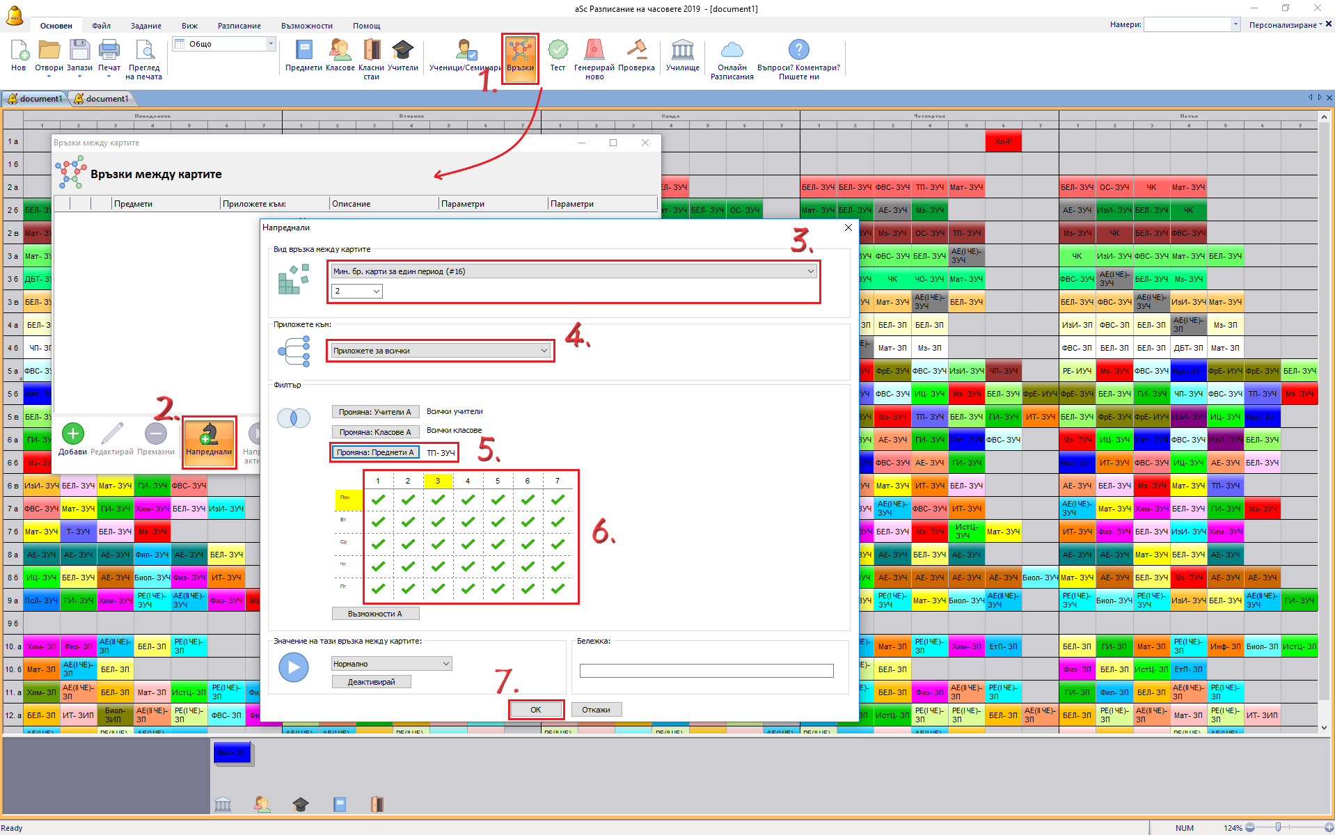 Можете да маркирате времето на провеждане. Софтуерът тогава ще подсигури минимум две замествания само на това маркирано за часове време на няколко учебни часа в картата за Неподходящо време.