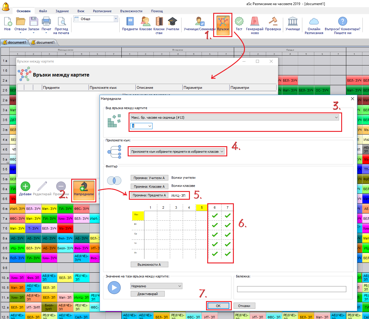 Можете да добавите разширена връзка в картата – Максимум часове на седмица и да обозначите 6 и 7 часове във времевата карта: