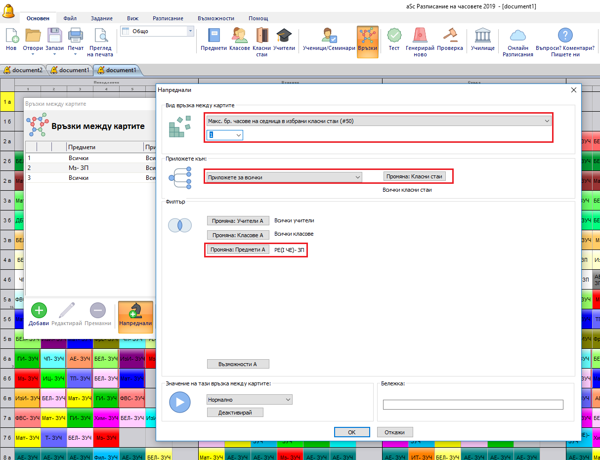 Обърнете внимание на „Приложи глобално”. Tова означава максимум 5 е приложен върху всички часове по Физическо възпитание и спорт във вашето училище.