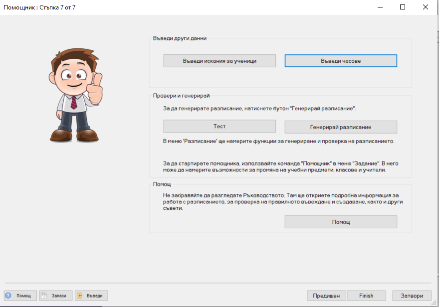 След като въведете основните данни, може да генерирате седмичното разписание. Натиснете бутон "Генерирай разписание", за да генерирате разписанието: