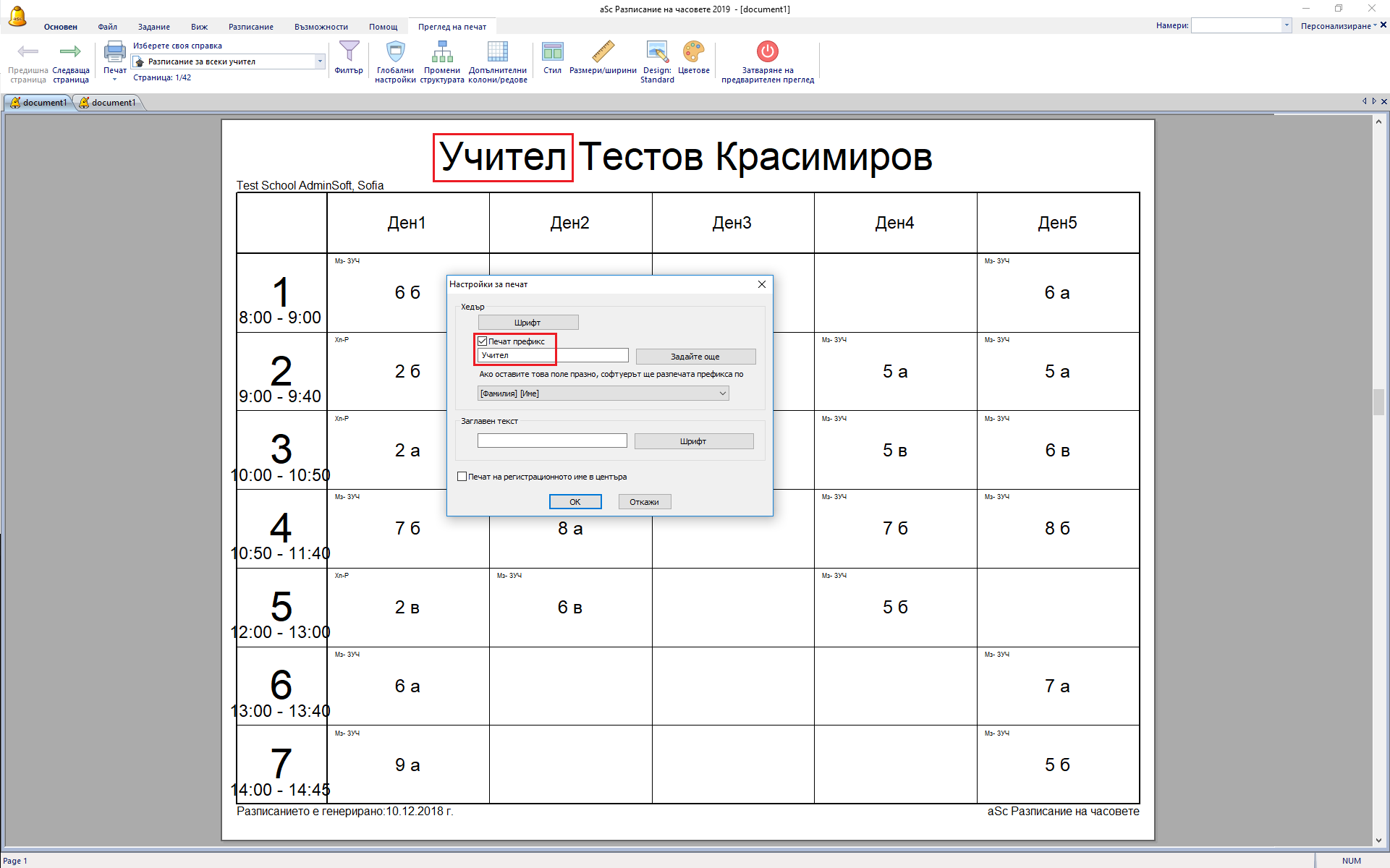 Как мога да принтирам Лектор или Професор вместо Учител?
