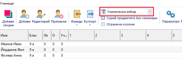 Как мога да въвеждам избрания от учениците предмет/курс