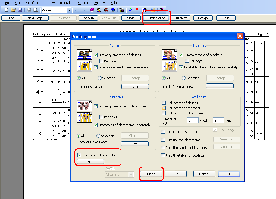 Nota: si no está usando los seminarios, no debería tener estudiantes individuales en el software. Sólo grupos. En este caso puede solamente imprimir el horario para clases enteras.