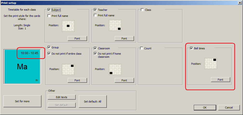 Print different bell times for teachers
