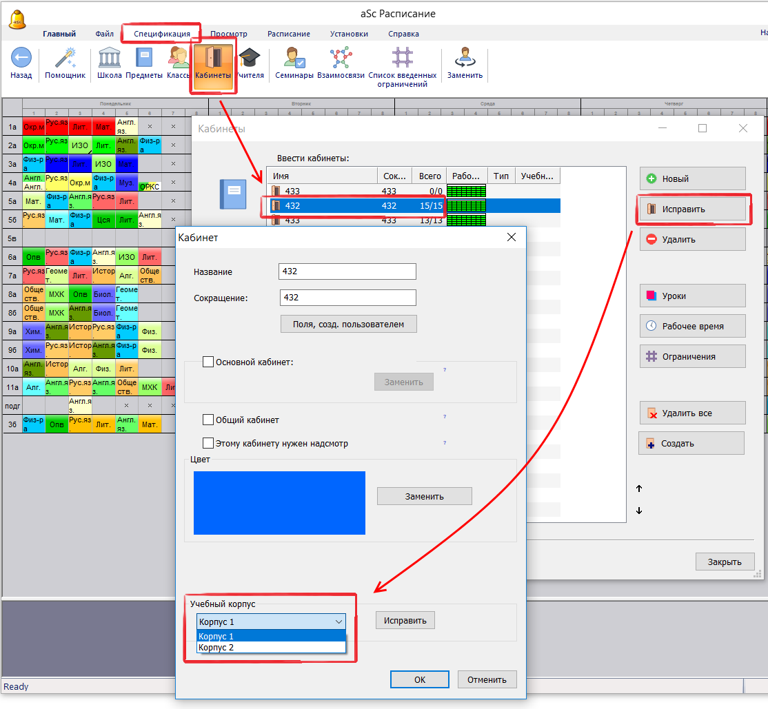 Шаг 2. Для каждого кабинета Вы можете определить, в котором корпусе он находится: