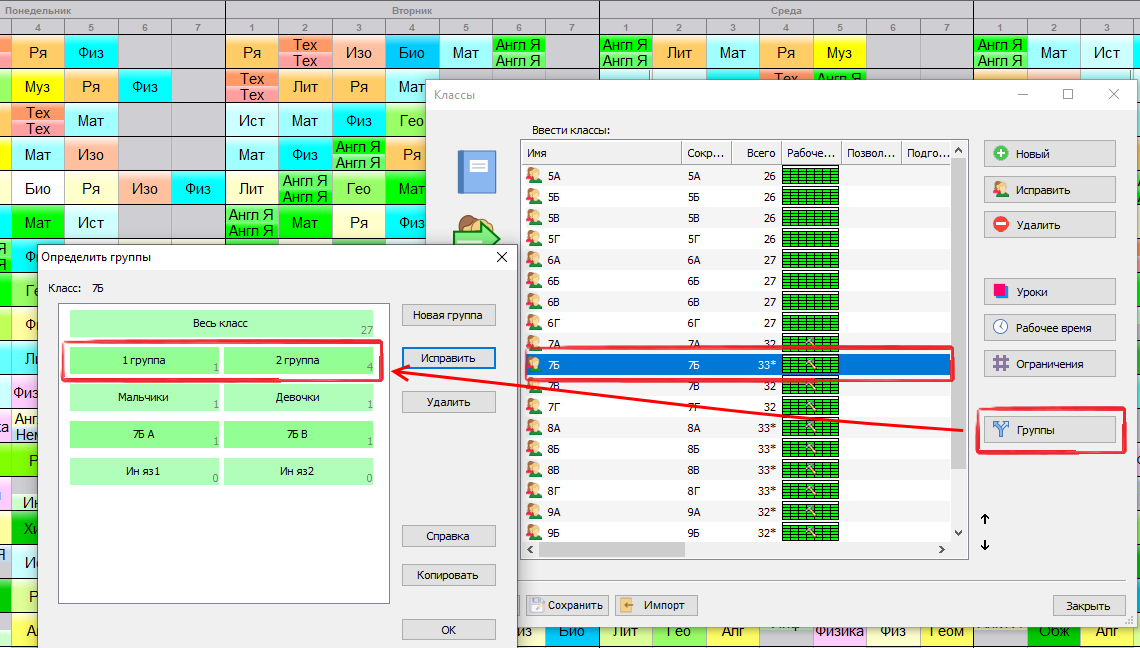Деление классов на группы