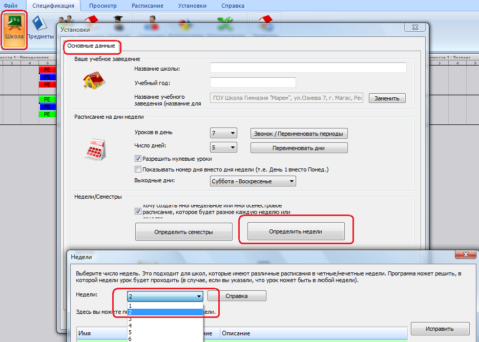 Если ваша школа имеет различные расписания на четных и нечетных неделях (неделя А и неделя B), можете указать, что в расписаний есть две недели:
