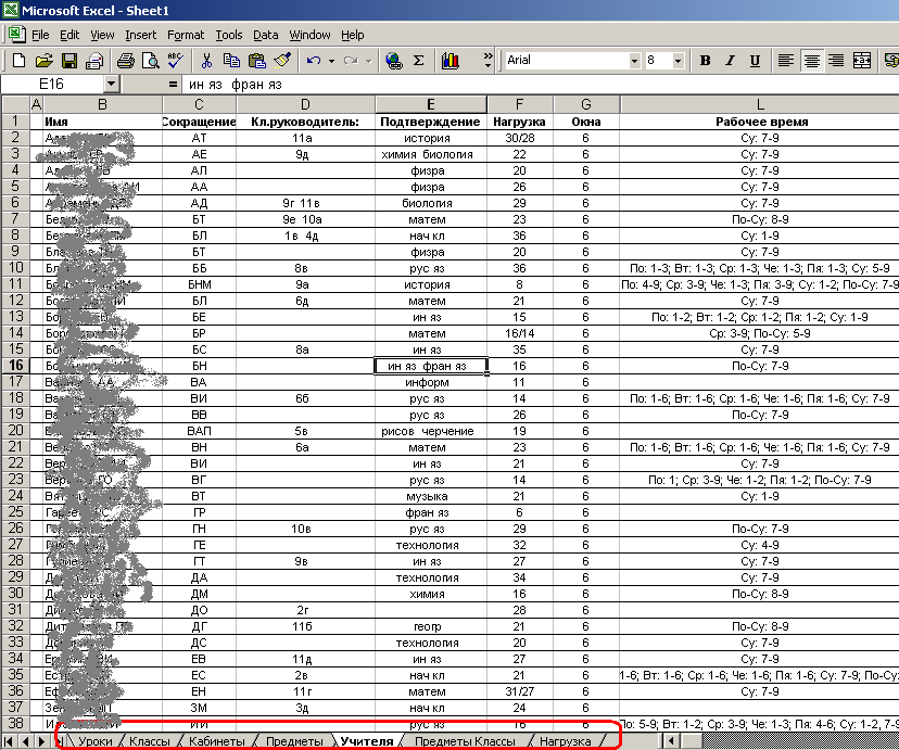 Обратите внимание, что бывает несколько листов (таблиц) Excel.