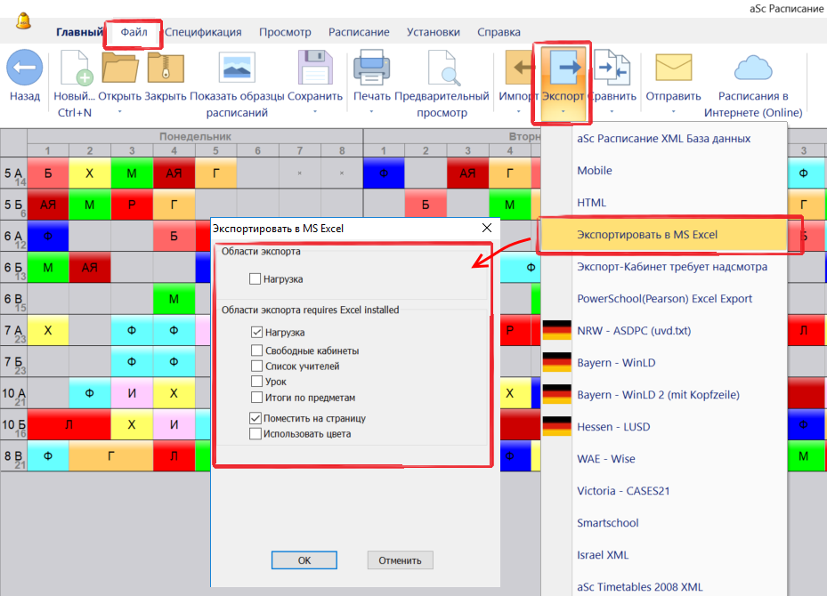 - Вы можете импортировать эти данные назад в программу aSc Расписания.