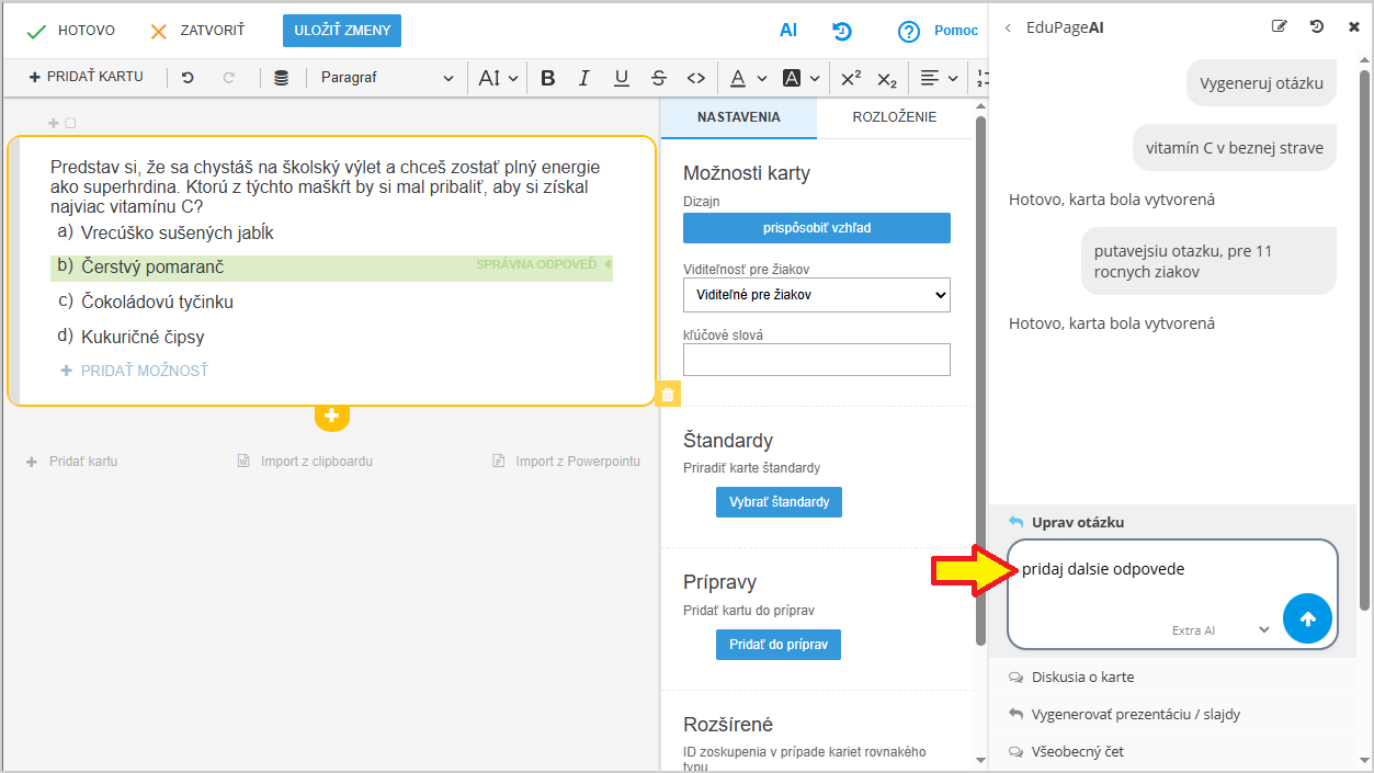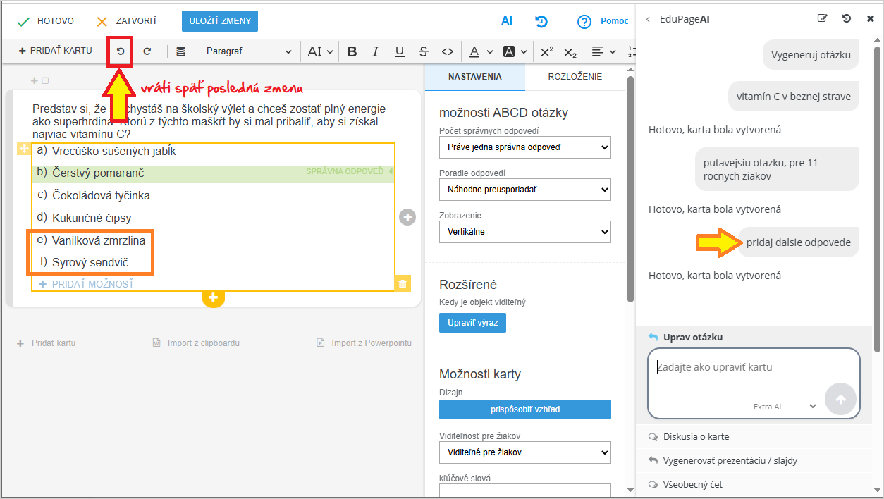 EduPage AI ste požiadali o úpravu vytvorenej otázky.