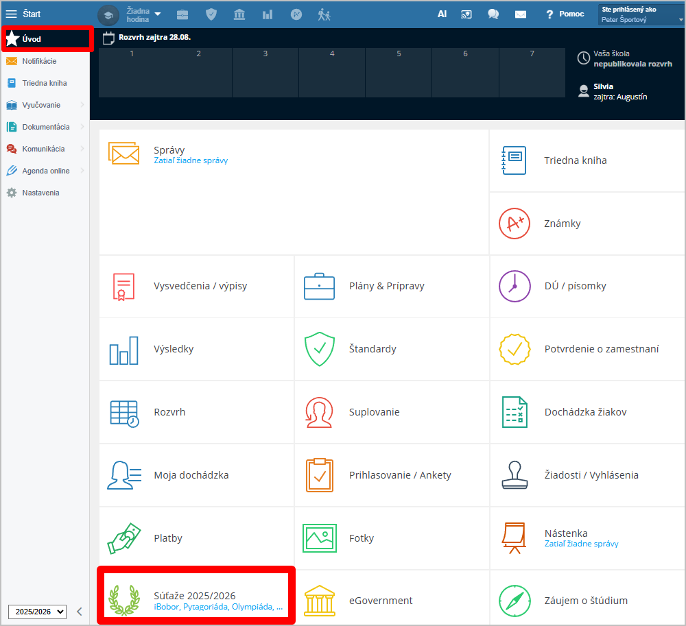 Registrovať/ prihlásiť ŠKOLU do súťaže Školský Pohár SFZ môže učiteľ v EduPage danej školy.