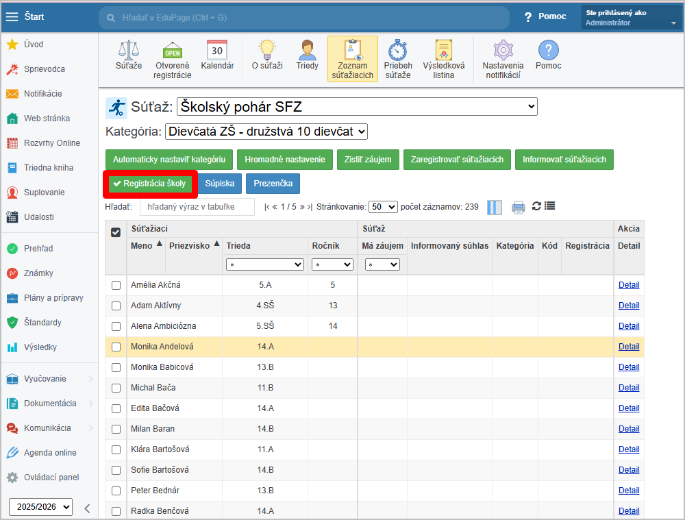 V časti Zoznam súťažiacich vyberte konkrétnu súťaž a kategóriu.