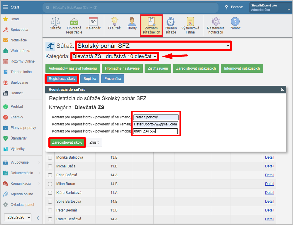 Registrovať školu je potrebné pre každú kategóriu samostatne - zvlášť pre kategóriu dievčatá a zvlášť pre kategóriu chlapci.
