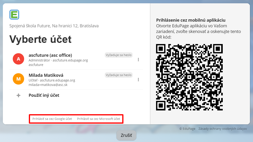 =Prihlásenie do EduPage cez Google/Microsoft účet