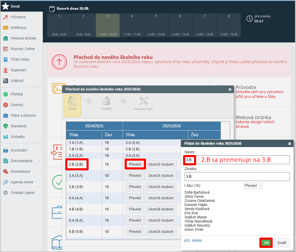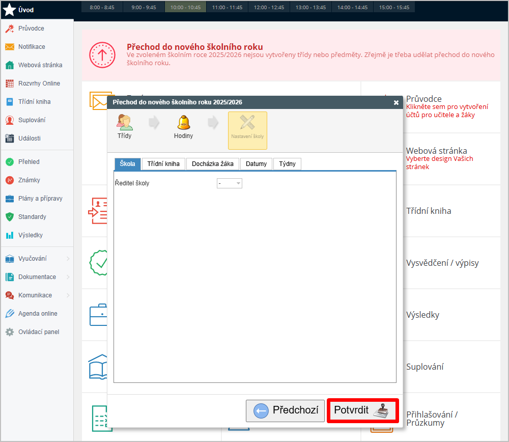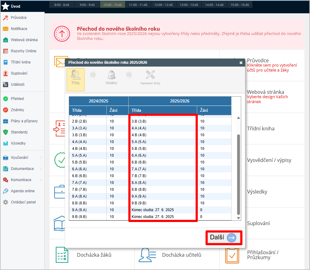 V posledním okně potvrďte a přechod do nového školního roku je hotový.