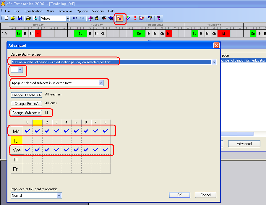 Napr. Máte 3 jednohodinovky Matematiky a jednu dvojhodinovku Matematiky. Ale nechcete, aby táto dvojhodinovka bola v pondelok alebo v stredu.