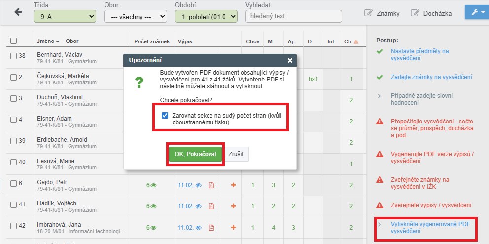 Jak vytisknu vysvědčení / výpisy pro třídu?