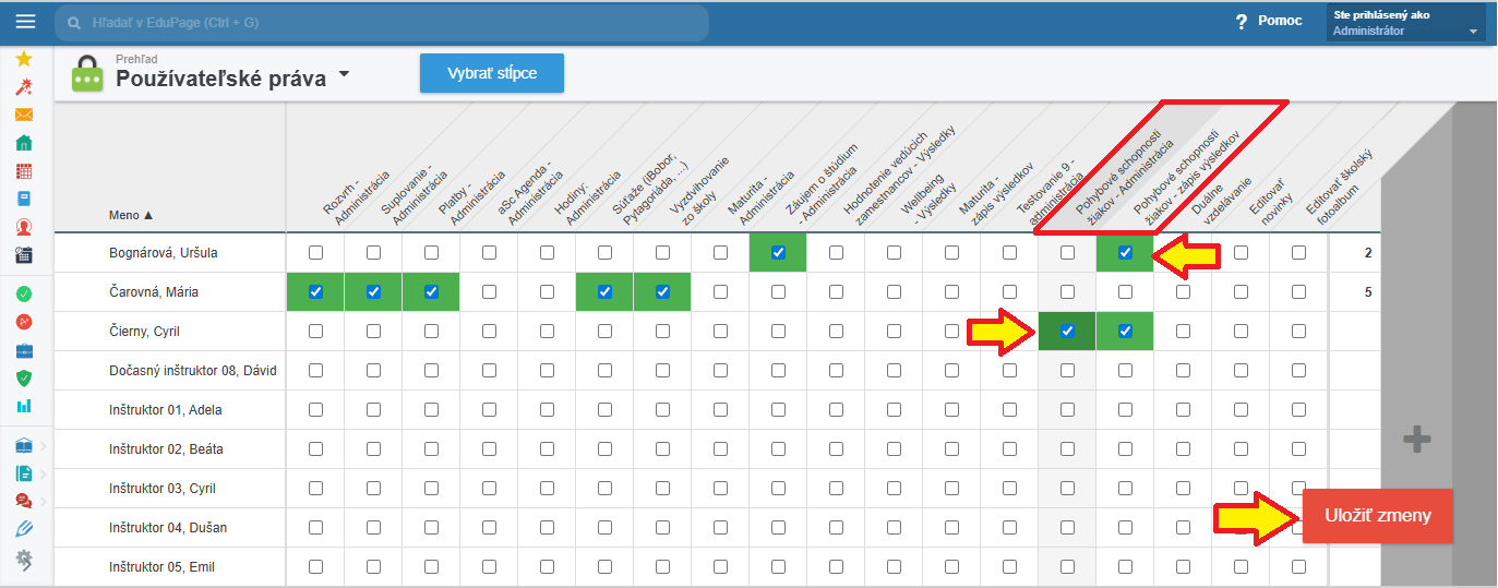 Právo na administráciu modulu Testovanie pohybových schopností v EduPage má štandardne iba administrátor.