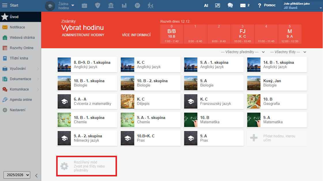 Třídní učitel si potom může známky prohlížet přes tzv. rozšířený mód.