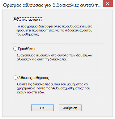 Κάνοντας το αυτό μπορείτε να Αντικαταστήσετε/Προσθέσετε αίθουσες για διδασκαλίες που έχετε ήδη υλοποιήσει.