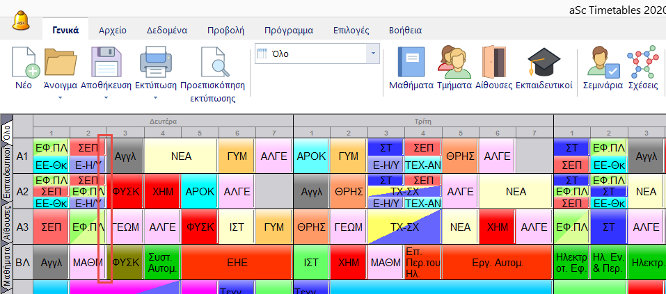 Εάν τοποθετήσετε μία κάρτα χειροκίνητα στο ωρολόγιο το πρόγραμμα αυτόματα διαλέγει μία από τις διαθέσιμες αίθουσες.
