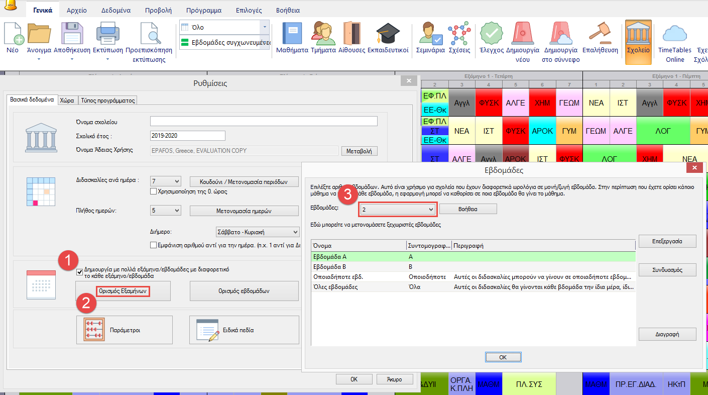 Εάν το εκπαιδευτήριό σας έχει διαφορετικό ωρολόγιο πρόγραμμα μεταξύ μονών και ζυγών εβδομάδων, μπορείτε πολύ απλά να δηλώσετε δύο εβδομάδες.