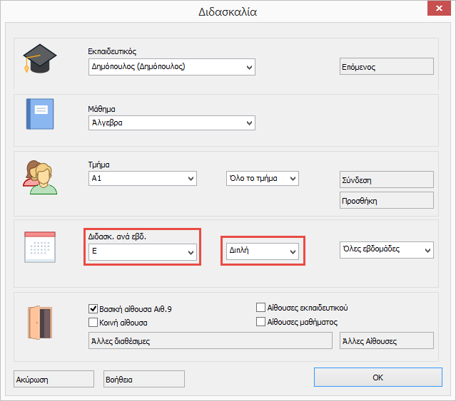 - Μπορείτε επίσης να ορίσετε η διδασκαλία να μην είναι μονή αλλά π.χ. διπλή.