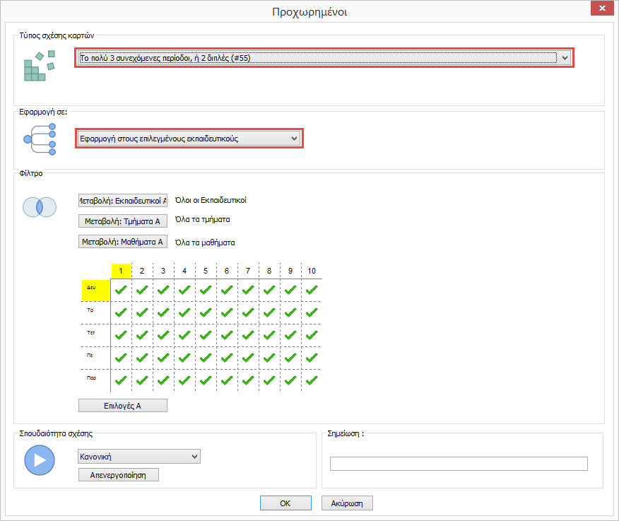 Πως μπορώ να ορίσω ότι ο εκπαιδευτικός μπορεί να έχει μέγιστο 3 συνεχόμενες περιόδους ή δύο διπλές;