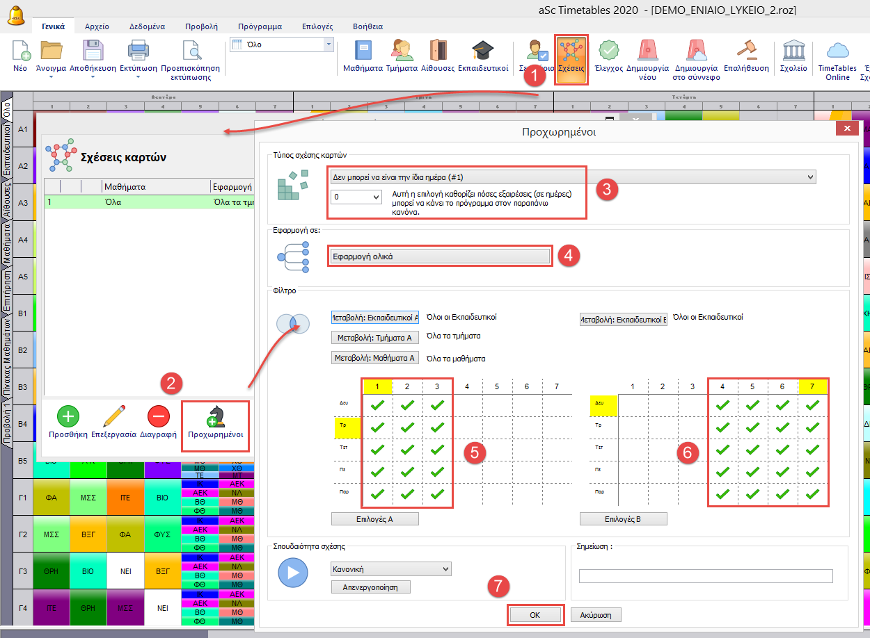 Εφαρμόστε την στους εκπαιδευτικούς έτσι ώστε εφαρμόζετε σε κάθε εκπαιδευτικό ξεχωριστά και επιλέξτε τις περιόδους για το πρωί και το απόγευμα αντίστοιχα.