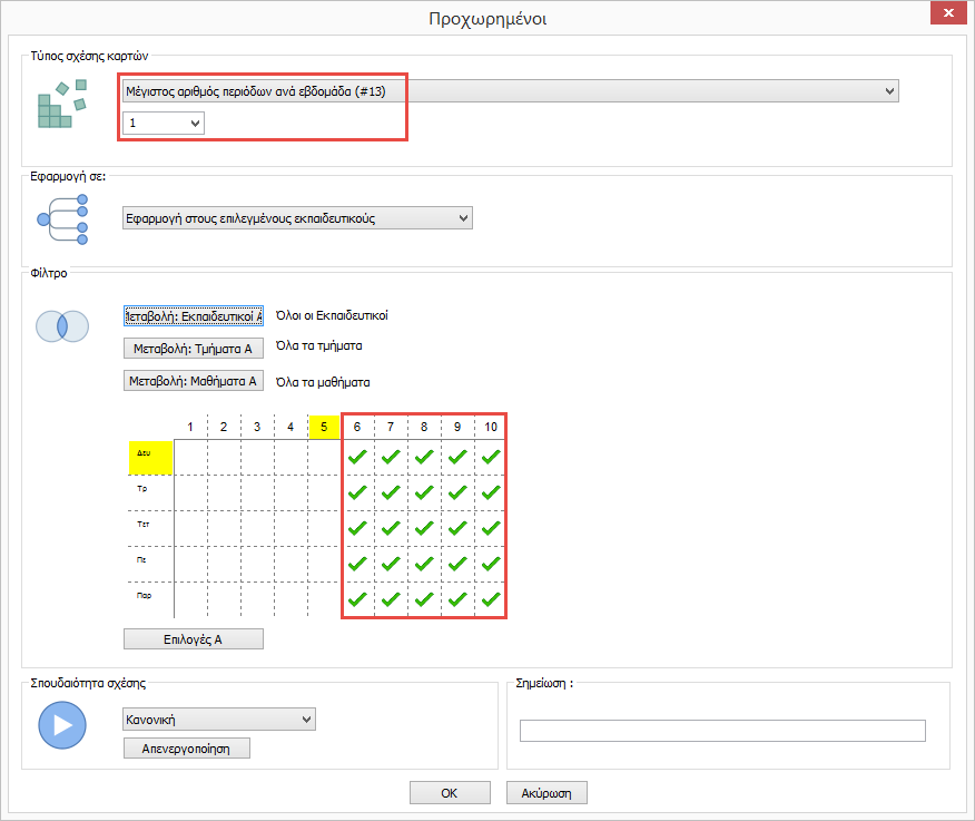 Τι σημαίνει η λειτουργία "Εφαρμογή σε" στις σχέσεις καρτών;