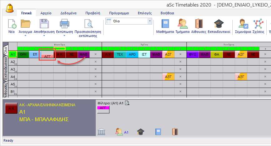 3. Δεν μπορούμε να τοποθετήσουμε την διδασκαλία στην 7η περίοδο επειδή είναι απαγορευμένη θέση.