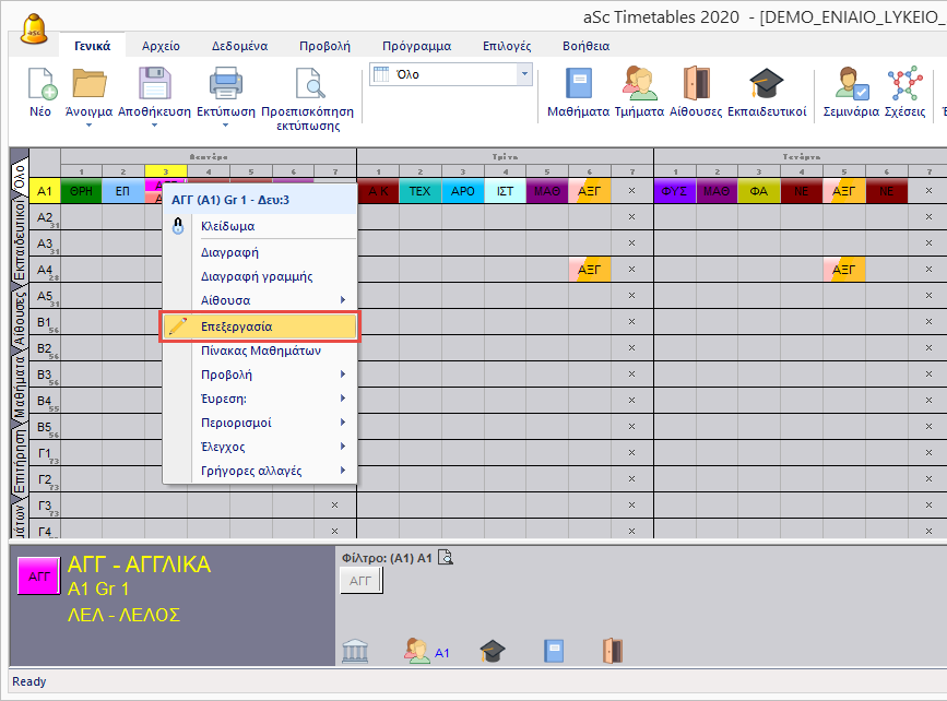 6. Μπορείτε να κάνετε δεξί-κλικ στην διδασκαλία και να την επεξεργαστείτε.