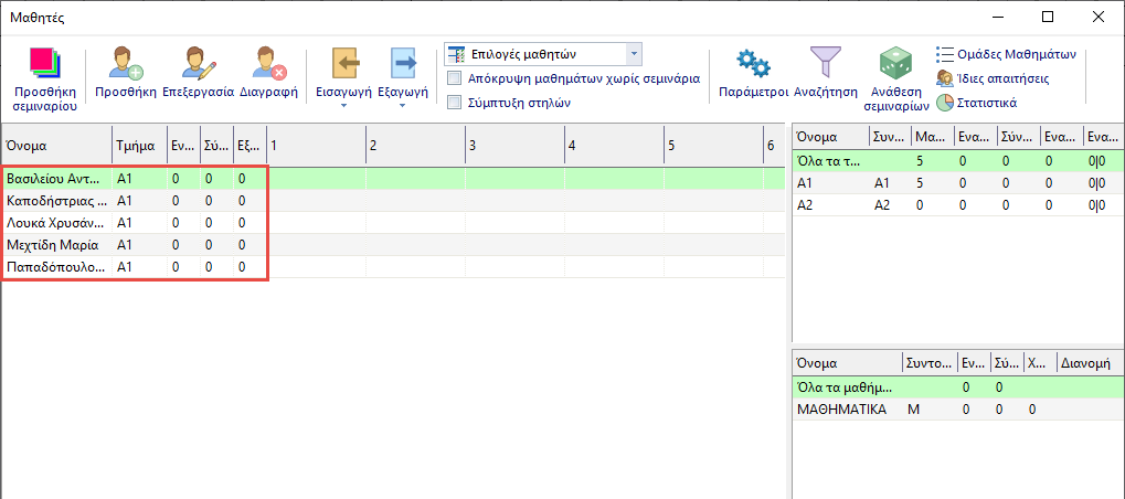 Ως αποτέλεσμα θα δείτε τους μαθητές στην λίστα: