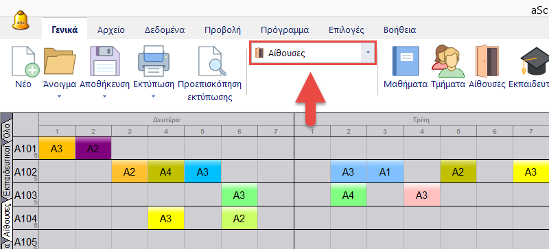 Οι κάρτες που εμφανίζονται στον πίνακα μη τοποθετημένων καρτών είναι οι κάρτες που δεν έχουν τοποθετηθεί ακόμα στο ωρολόγιο ή οι κάρτες στις οποίες δεν έχει ανατεθεί αίθουσα ακόμα. Αυτές έχουν μία λευκή γραμμή στα δεξιά τους.
